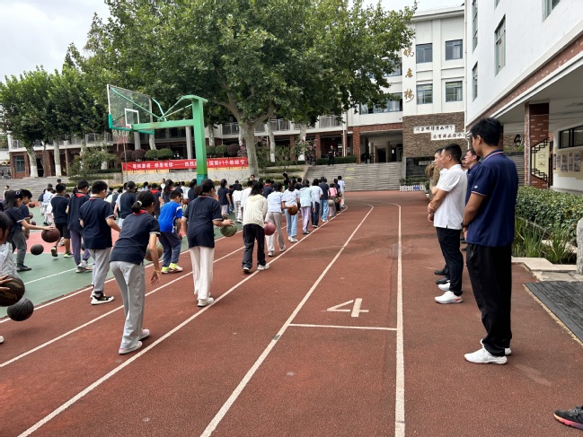 调研活动以观摩大课间“篮球操”拉开序幕。在晓庄附小的操场,陶书记一行全程观看了学校大课间的篮球操活动。伴随着活力十足的音乐,学生们拍球跑动展现出良好的运动素养与精神面貌。观摩过程中,调研组成员不时与现场的体育教师交流,详细咨询篮球操的编排思路、日常组织流程及活动保障等细节,深入了解晓庄附小在大课间体育活动设计与实施中的特色做法。